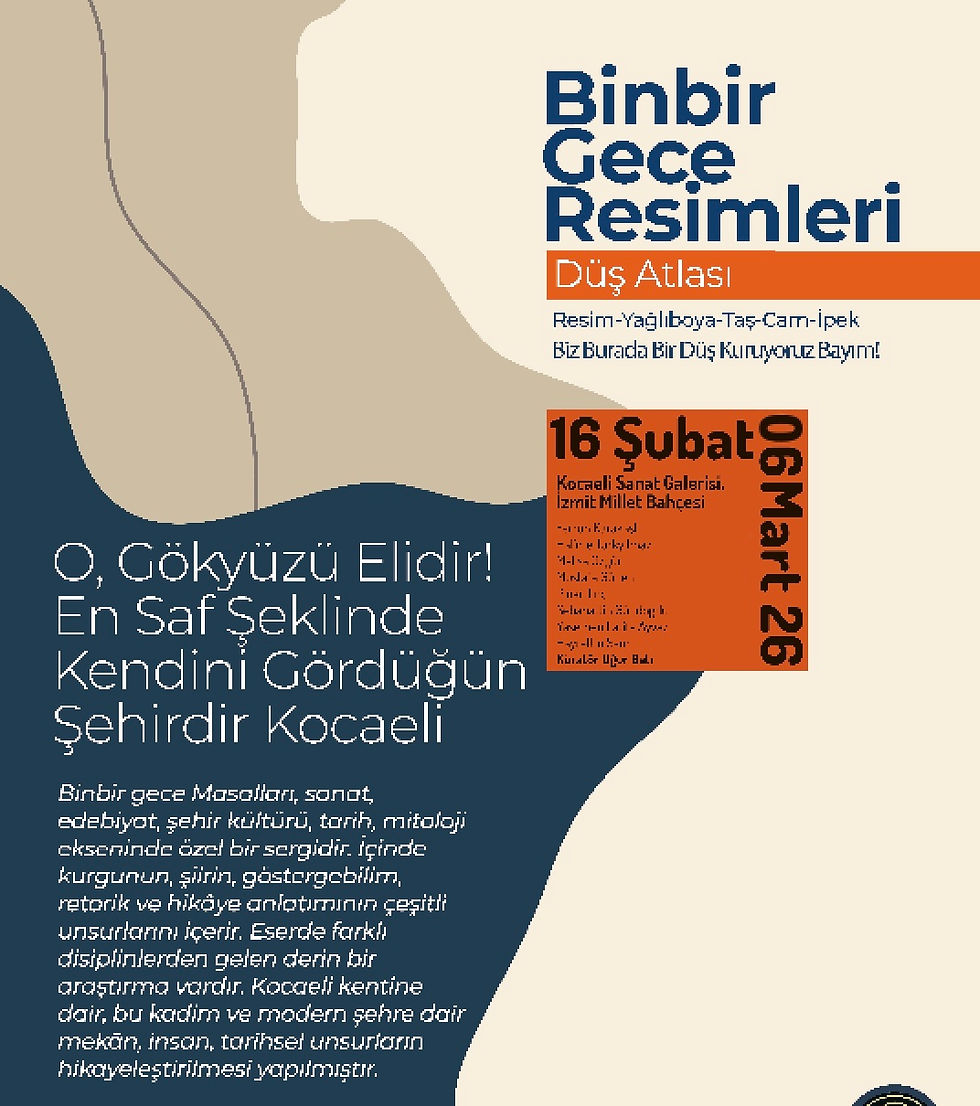 İzmit’in merkezinde konumlanan yeni kültür mekânları ve bu mekânlarda hayat bulan sergiler, kentin üretim temelli kimliğini anlam temelli bir kimliğe doğru genişletmektedir. “Binbir Gece Resimleri: Düşler Atlası” sergisi, bu dönüşümün simgesel bir eşiği olarak karşımıza çıkar. Masal anlatı geleneğinden beslenen sergi, yalnızca estetik bir deneyim sunmakla kalmaz; izleyiciyi zaman, mekân ve kimlik üzerine düşünmeye davet eden çok katmanlı bir anlatı kurar.